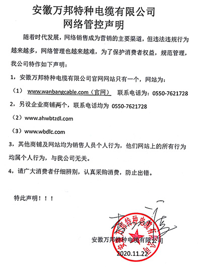 - 安徽萬邦特種電纜有限公司技術(shù)力量厚,生產(chǎn)工藝好,檢測設(shè)備完善,質(zhì)量高,管理科學(xué),品種繁多......查看詳細(xì)